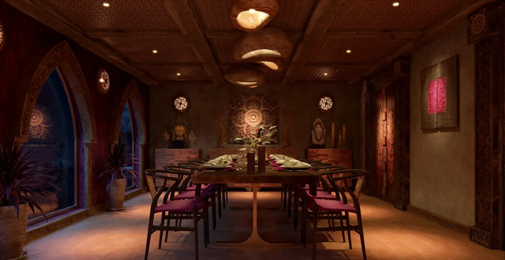 Ẩn mình sau cánh cửa tách biệt, Reveranga Private mở ra một thế giới của sự riêng tư và tinh tế. Ánh sáng dịu nhẹ, nội thất thủ công tinh xảo và âm hưởng Á Đông hiện đại tạo nên bầu không khí ấm cúng, thanh lịch.